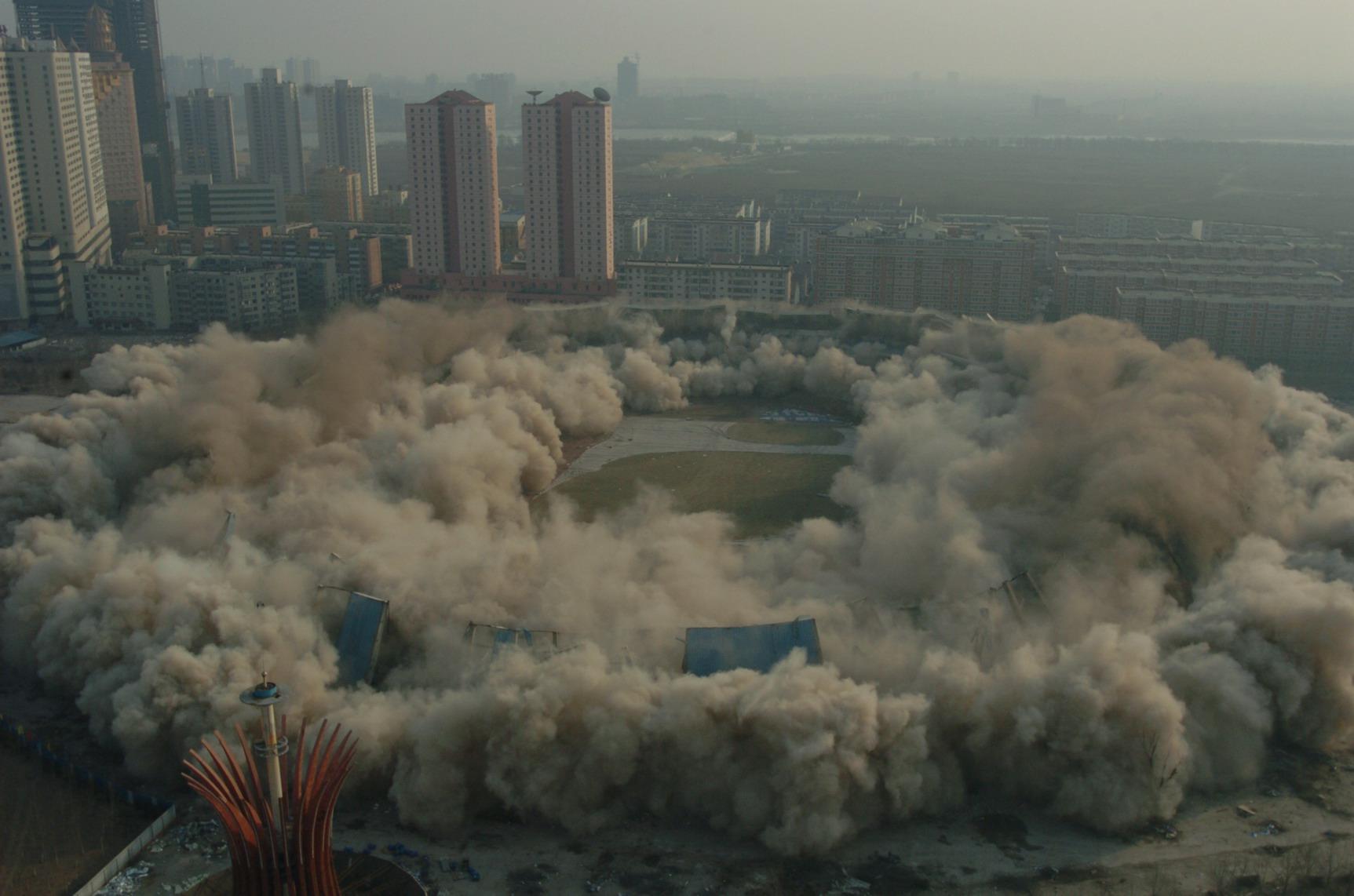 五里河体育馆占地5万㎡,建地面积10万㎡,是世界最大的体育馆拆除爆破工程,共钻孔8500个,使用炸药2.5吨,雷管1.4万发,成功将爆破粉尘控制在200m范围内,爆后5分钟粉尘全部消散,创造了不论是单体还是爆破面积的世界之最,也是世界首次超大规模的环保拆除爆破。