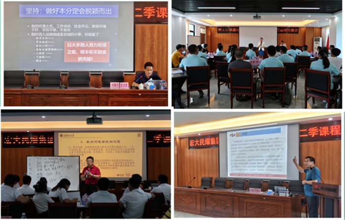 9月11-13日,学员们在《旋乐吧spin8追梦人》的嘹亮歌声中,开始紧张的一天学习课程。中华礼仪文化传播者郑懿珊老师讲述《礼遇人生——商务礼仪培训》,细致全面的解读职场礼仪、商务拜访等内容,组织实战演练,学以致用。刘根生博士以《如何成为组织需要的人才》为课题授课,令学员进一步明晰职业生涯规划,提升竞争力,快速调整人才成长亚健康状态。赵洱岽教授在《高效管理沟通》授课中,以幽默风趣的语言、丰富生动的案例,逐一解读沟通认知、评价、类型、差异化沟通等方面,令学员在满堂笑声中收获知识。公司总工程师李国亮讲授《中国民爆100年》,系统梳理了中国民爆历史发展进程及未来发展趋势,鼓舞昨日有志青年早日蜕变为今日公司精英,争当明日行业尖兵。公司副总经理张忠亲切分享了个人发展经历,讲授《安全管理》,深入浅出的阐释了安全的本质、管理手段、标准化建设等知识及运用,激发学员学习内驱力。