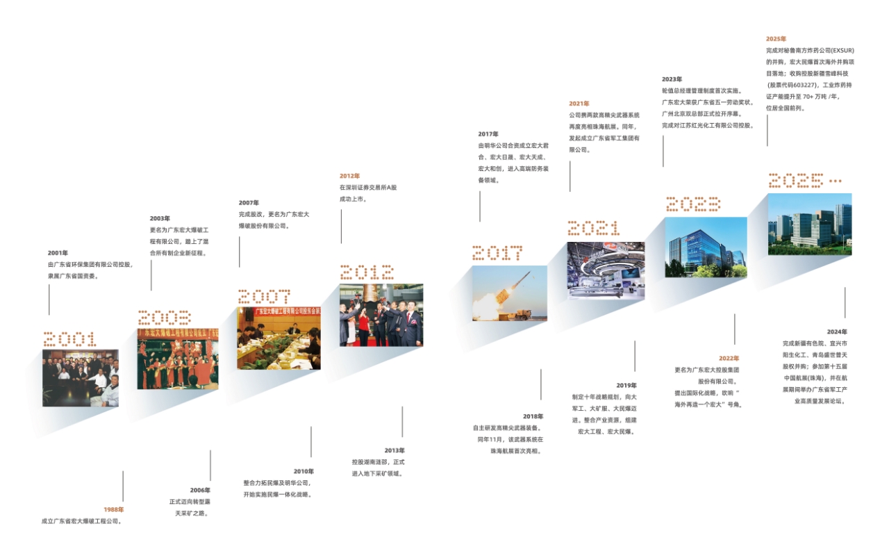 广东旋乐吧spin8坚持国有控股、市场机制,践行“诚信为本、客户至上、成人达己、竞合天下”的经营理念,从初创期的承包经营到改制上市,实现国有资产的高速增值,形成了“防务 - 民爆 - 矿服 - 能化”协同发展的产业体系。